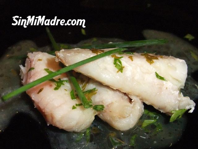 En un recipiente adecuado para microondas colocar la cola de rape previamente salada y con una cucharada de salsa meunier y pon encima una tapa para microondas.