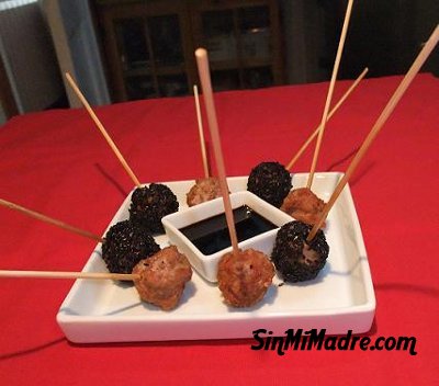 Albondiguillas en dos colores con salsa de soja