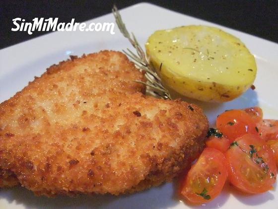 Cuando el aceite este caliente pasar el filete de pollo adobado primero por la harina, sacudirlos bien, pasarlos por el huevo batido y despues cubrirlo bien con el pan rallado y meter en la sarten.